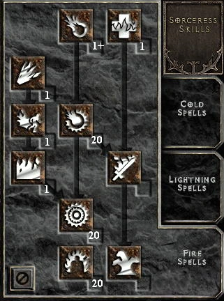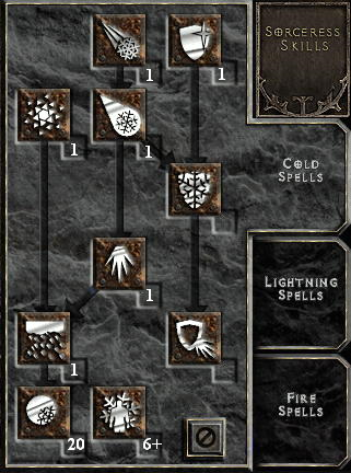 - For this section I am going to break it down into three separate parts. First, I will cover the Sorceress’s Cold spells, followed by the Lightning and Fire spells. Each section will contain an explanation as to why you will invest points into certain skills and certain max/min you should obtain for the effectiveness of the build. I will give you a breakdown of when you should invest points into certain skills while leveling, and I will let you know what skills should be maxed and in what order. I will show you what skills you should have invested by level 88 (including all bonus). Onwards!