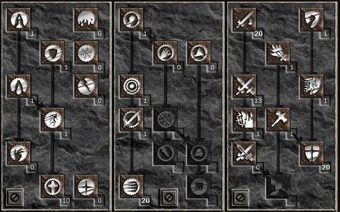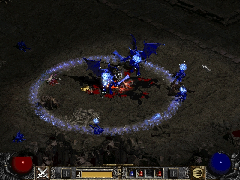 When surrounded by a number of enemies and having the need to focus down one single monster in particular, the Zealot can use Sacrifice to kill the target quickly albeit sacrificing his own health in the process. To recover after such an attack or after an especially gruesome battle, the Zealot can almost instantly heal and replenish his mana by redeeming nearby fallen monsters. When dealing with physically immune or tough monsters the Zealot has access to Vengeance for powerful elemental attacks or slowing down a faster enemy.